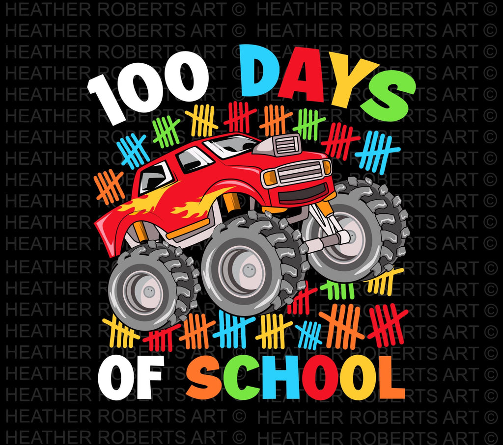 100 Days of School Monster Truck PNG: Teacher Sublimation File