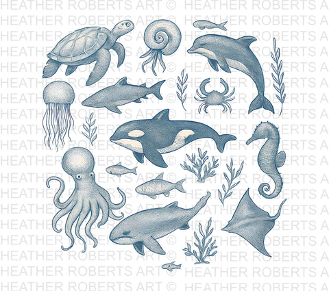 90s Sea Animals T-Shirt PNG: Retro Y2K Sealife Design